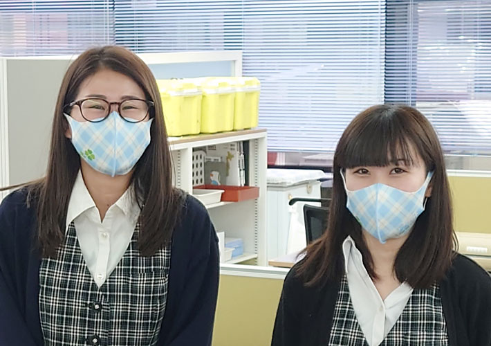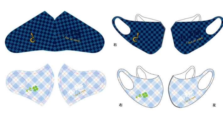 左面に文字入れ、右面にイラストロゴが入ったおしゃれなマスクに仕上がっています。全面の格子柄もきれいにプリントされて、遠くからでも良く目立ちそうです!