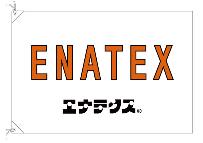 白地の旗にオレンジと黒色を使ったロゴを色鮮やかにプリントいたしました。