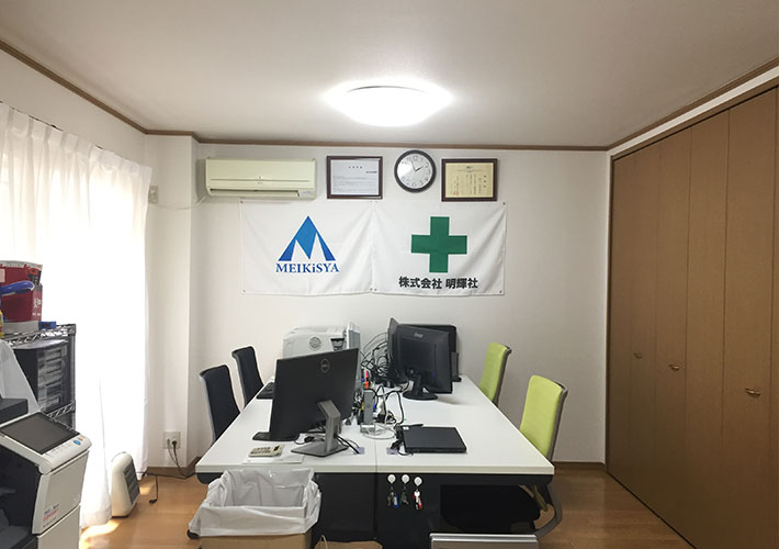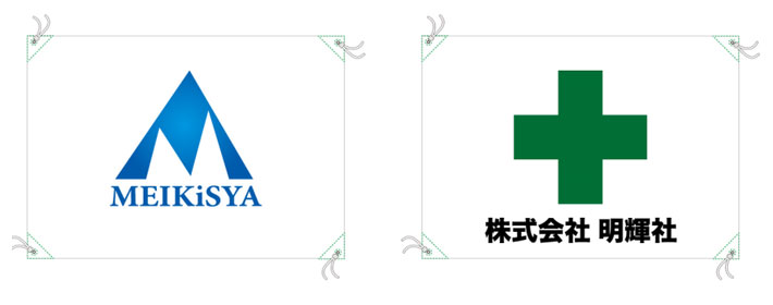 会社ロゴデザインと、緑十字に社名を入れたデザインの2種類から名入れ制作を行いました。