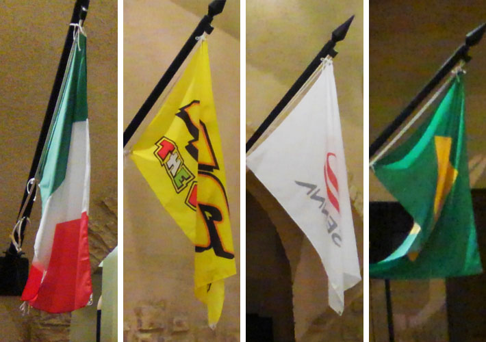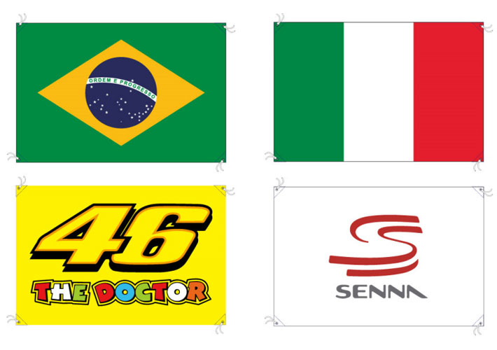 国旗やロゴが入った、こちらの4種類のデザインから名入れ制作を行いました。