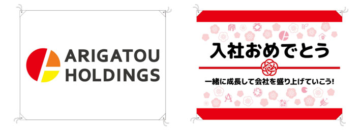 会社ロゴが入ったデザインと、入社を祝うメッセージが入ったデザインの2種類の名入れ制作を行いました。