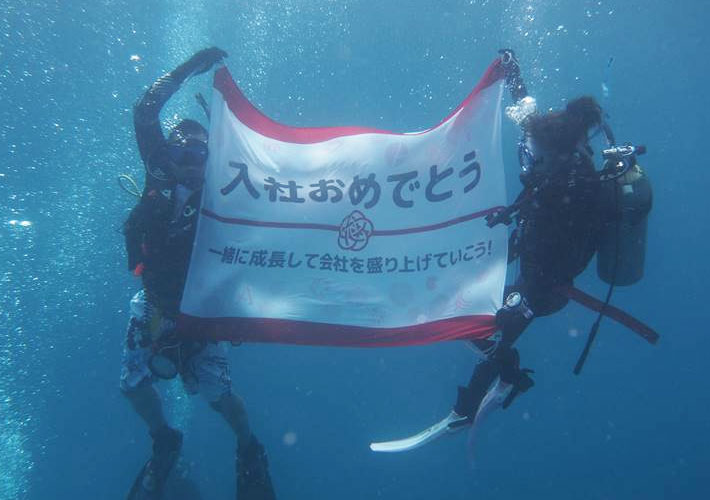 水中での使用という一風変わった方法でご活用頂いておりますが、メッセージや赤色の縁取りも色鮮やかに目立っていますね!