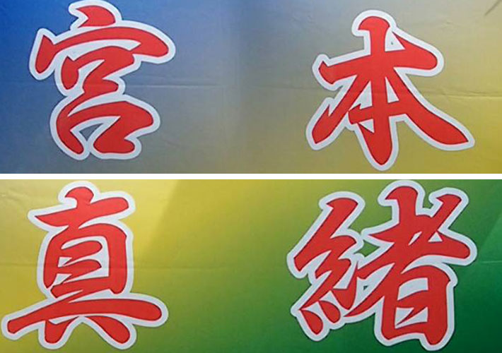 生地は少し厚みのあるテトロントロマットを使用しており、定番のポンジやトロピカルといった格安生地よりも耐久性のある旗制作にお薦めです。今回のような屋外使用の横断幕にも最適かと思います。