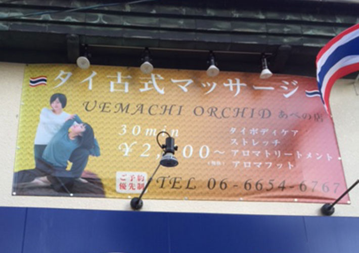 マッサージ店様のオリジナルフラッグ、横断幕を製作させて頂きましたので、ご紹介いたします。
