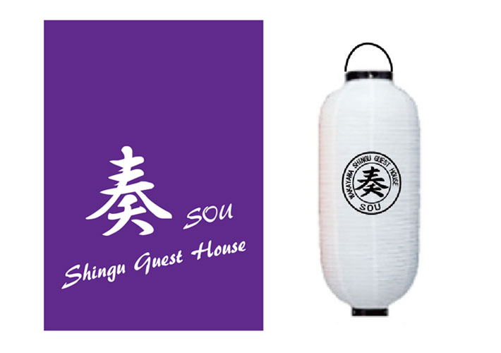 提灯には店舗ロゴ、店頭幕には店舗名などが入ったこちらのデザインから、それぞれ名入れ制作を行いました。