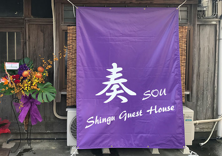 雨風に強いビニール素材のターポリン2類生地を使用し、看板代わりになる大きな幕を制作しました。