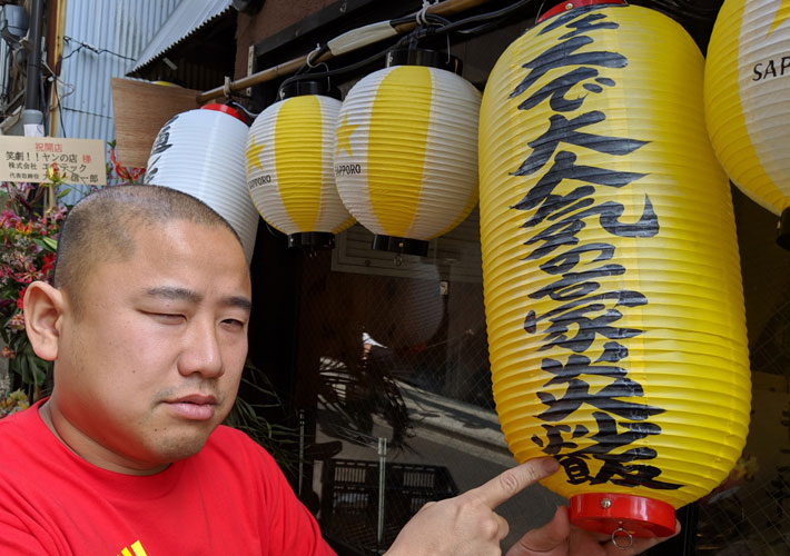 白、黄色の2種類のビニール提灯にそれぞれ違った文字入れを行いました。