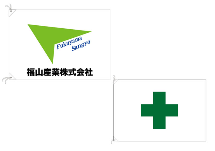 | サイズ/数量 | 社旗:w1,000×h700(㎜)、安全旗:w900×h700(㎜)/各1枚 計2枚 |