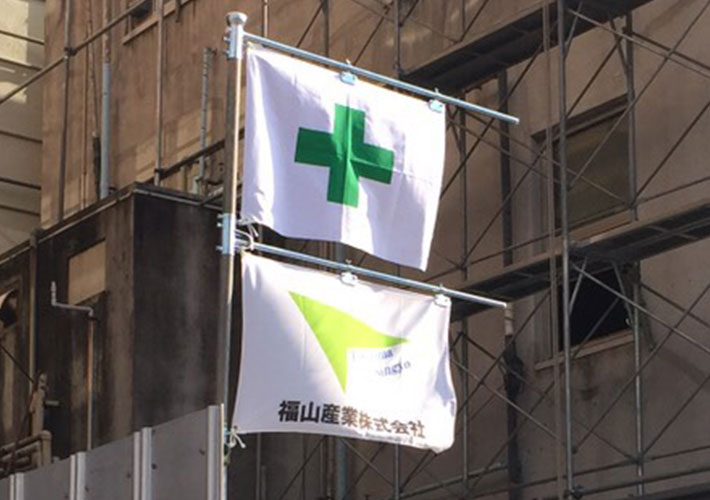 屋外設置用のオリジナル社旗・安全旗を製作させて頂きましたので、ご紹介いたします。