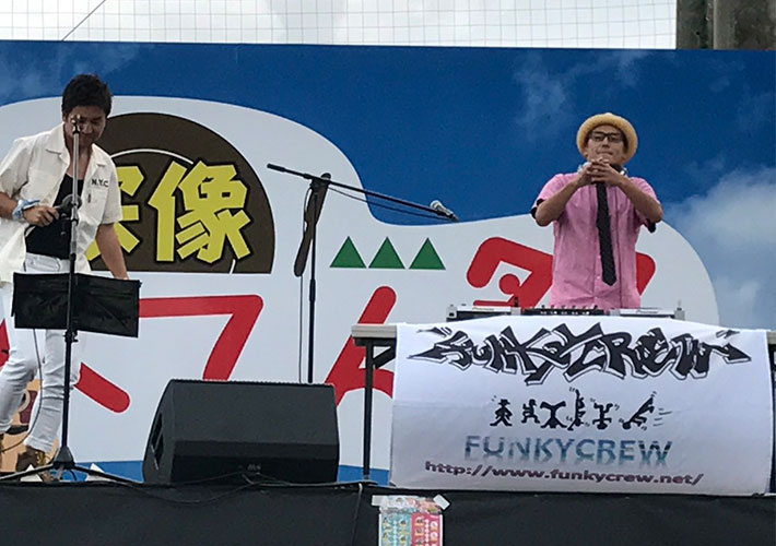 制作した団体旗を、フェスのステージ装飾としてご活用頂いております。ロゴがよく映えて、アピール力のある装飾になっています!