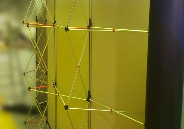 蛇腹式の本体フレームに、プリント製作したメディアをマグネットで貼り付けるタイプのバックパネルとなります。