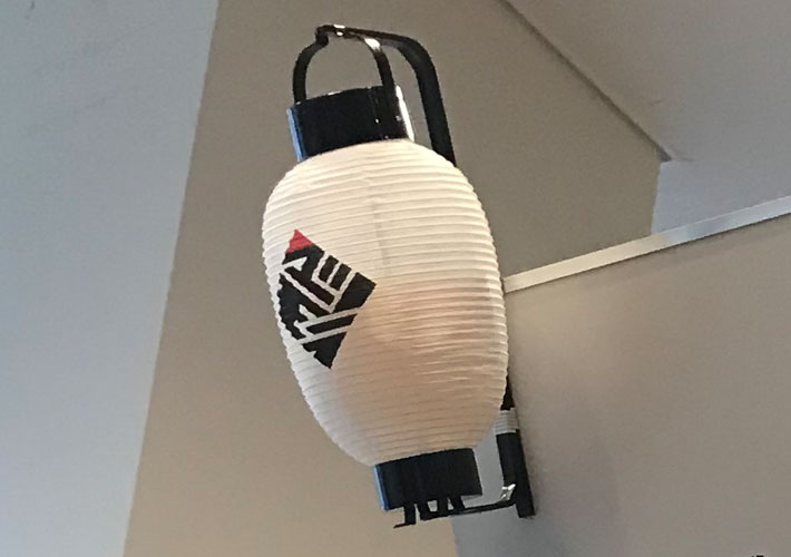 取っ手付きの弓張提灯はこのように壁に引っ掛けて飾ることができ、装飾として大活躍するアイテムです。展示会でも目を引きますので、訴求力UPが期待できます!