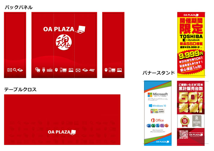 【事例298】OA機器販売会社のイベントブース装飾用テーブルクロス、バナースタンド、システムパネルを製作いたしました
