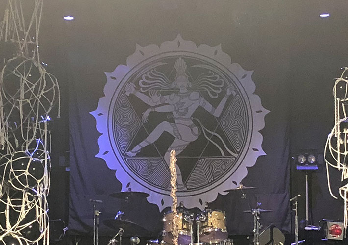 ステージ中央に設置して頂き、非常にインパクトのある厳かな旗となっております。