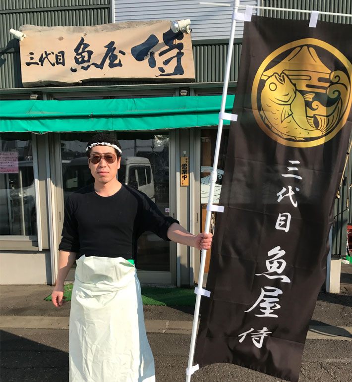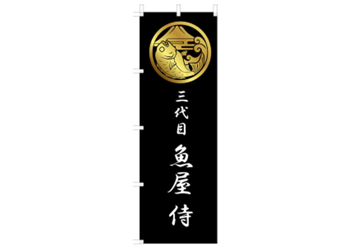 黒地に金のロゴと和風の文字が映え、渋いのぼり旗に仕上がっています!