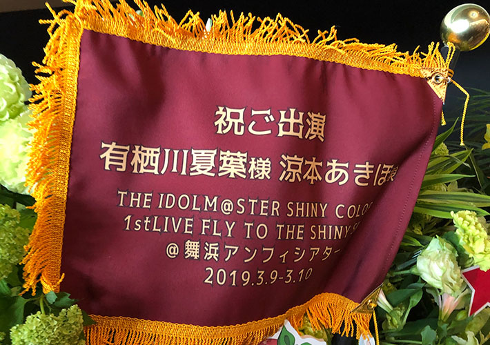 出演祝いのフラワースタンドに当店のオリジナル旗を飾って頂きました。