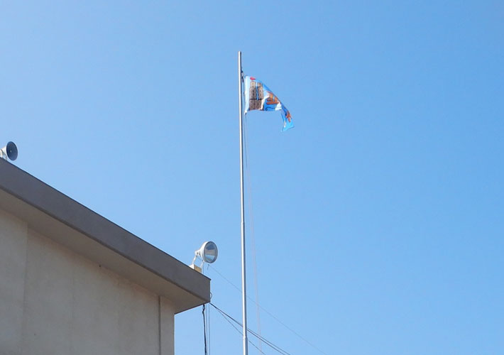 w1,350×h900mmの特注旗を小学校様のポールに掲揚して頂いております。