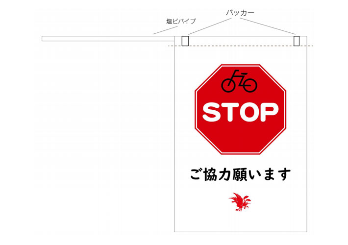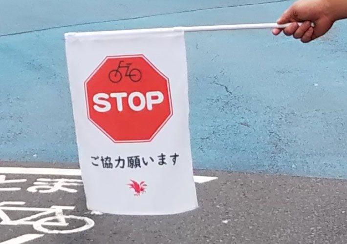 引率や応援手旗の場合は横向きで印刷を行うことが多いですが、今回のような交通安全用の手旗の場合、文字がしっかり見える縦向きでの製作もお薦めです。