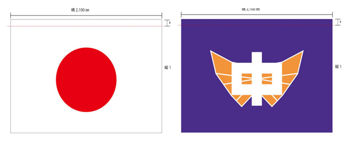 | サイズ/数量 | w2,100×h1,400(㎜)※棒袋含んだ高さ1,480㎜/2デザイン各1枚 計2枚 |