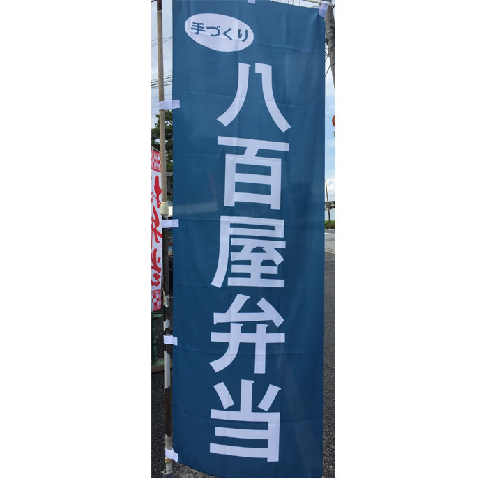 濃紺色に白色の文字が映え、アイキャッチ効果の高いのぼり旗に仕上がりました。