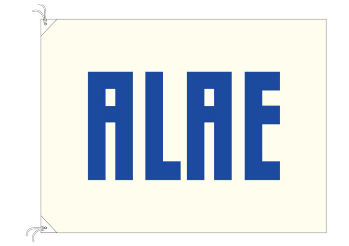 表裏両面から補強する挟みレザーハトメを左辺に行っているので、長期使用にも最適な旗となっています。