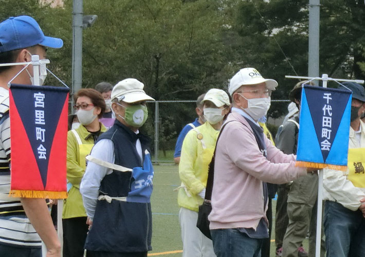 町会名が入った6種類のカラフルなデザインから名入れ制作を行いました。