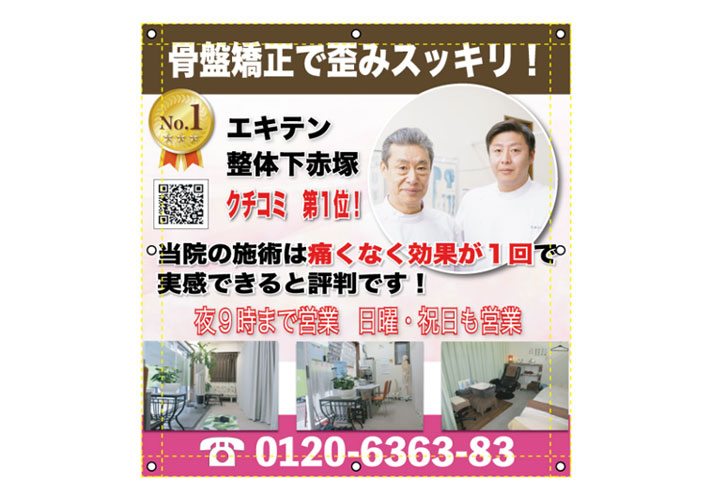 整体院様のオリジナル店頭幕を製作させて頂きましたので、ご紹介いたします。