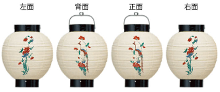 正面・背面と、右面・左面には同じデザインが入っています。4面に名入れを行うことで、どの方向から見ても華やかな提灯となります。
