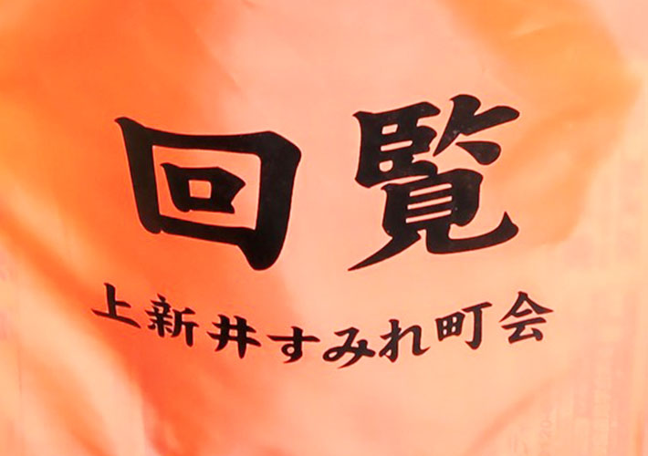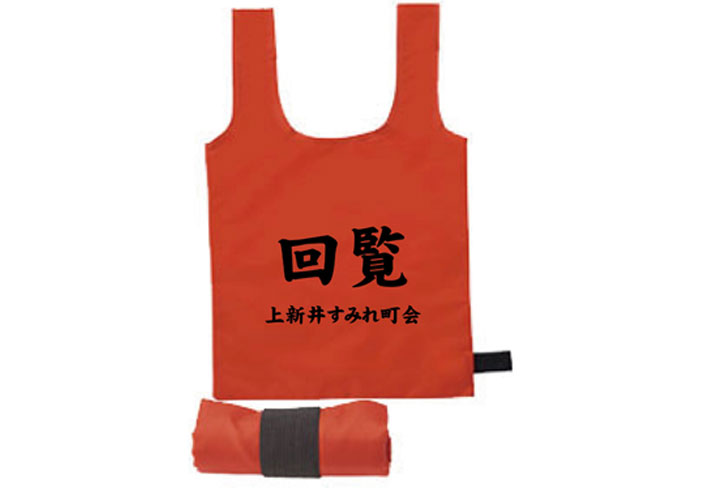 「回覧」の文字や町会のお名前が、レッドカラーのバッグによく映えていますね!