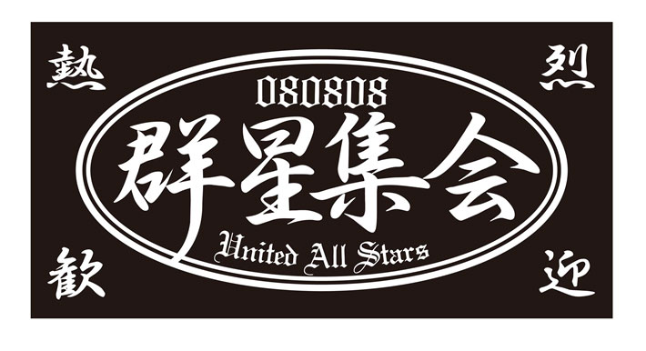 黒地に白色でロゴや歓迎の文字が入った、こちらのデザインから名入れ制作いたしました。