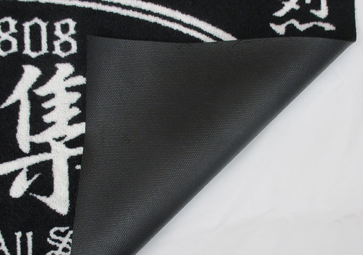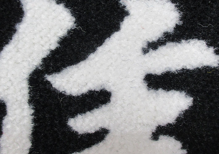 カーペット調の起毛タイプのフロアマットに、黒色と白色の2色で捺染印刷を行いました。