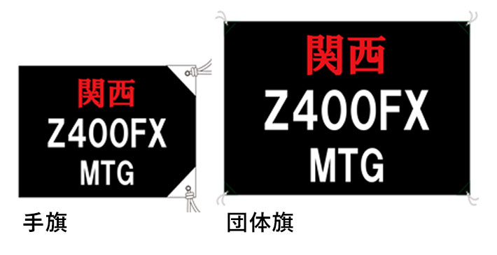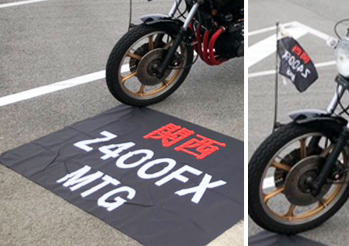 手旗は耐久性のある挟みレザーハトメ加工を右辺に行い、バイクに取り付けて装飾としてご活用頂いております。