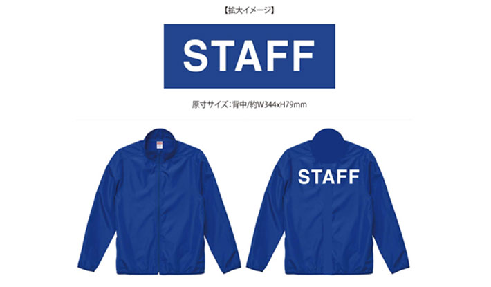 背面に白色で「STAFF」の文字が入った、こちらのデザインから名入れ制作を行いました。