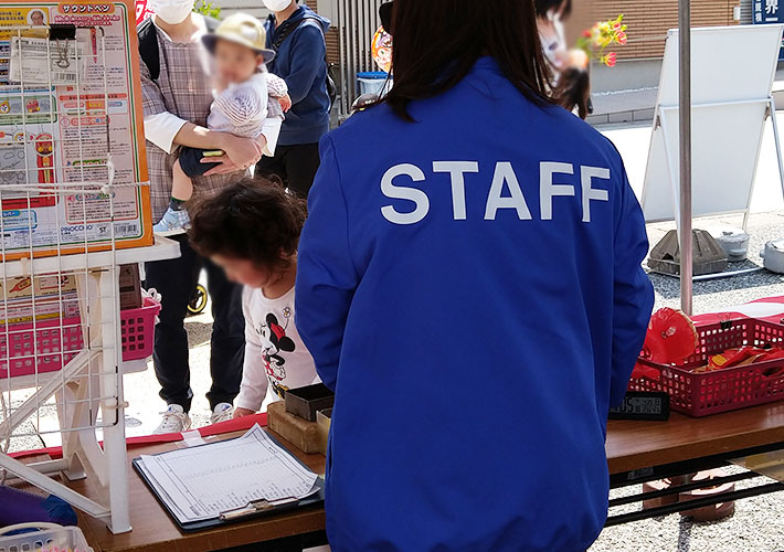 鮮やかなコバルトブルーのブルゾンの背面に大きく名入れを施し、遠くからでもスタッフだと伝わりやすいブルゾンに仕上がりました。