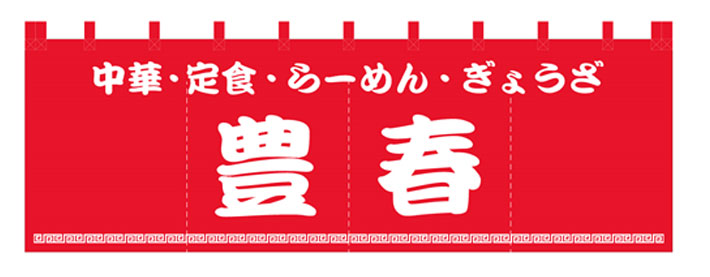 中華風デザインの赤色のれんに店名が入った、こちらのデザインから名入れ制作を行いました。