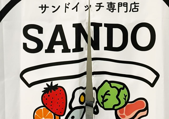サンドイッチ専門店様のオリジナルのれんを製作させて頂きましたので、ご紹介いたします。