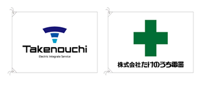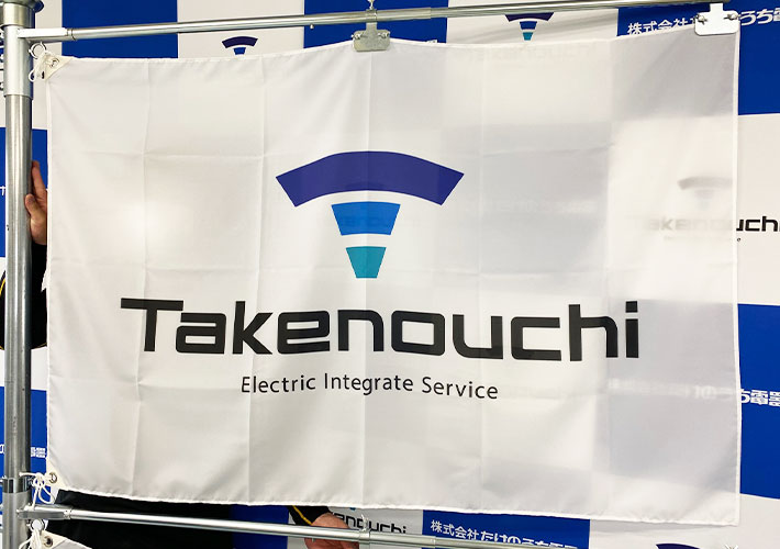 定番のw1,350×h900mmサイズにてロゴ入りの旗を制作いたしました。