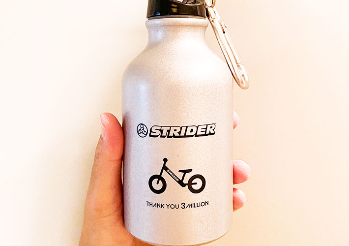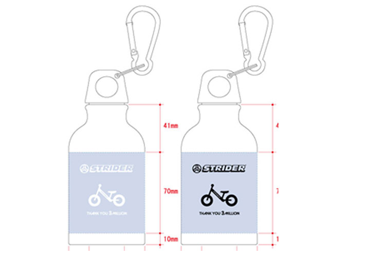 マットシルバーのボトルに黒色で一色名入れを行い、スポーティーなオリジナルボトルを制作しました。