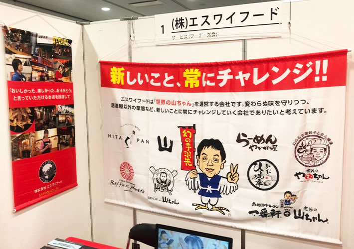 ブース内装飾としてメッセージ入りのタペストリーを使用することで、背面が華やかになり訴求力の大幅UPにも繋がりますね!