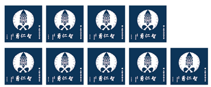 紺色の背景に白色でロゴや文字入れを行った、こちらの9種類のデザインから名入れ制作を行いました。