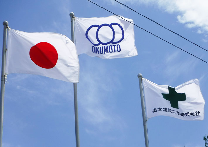 【事例462】建設業様の屋外掲揚用の社旗、安全旗、国旗を製作いたしました