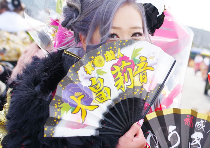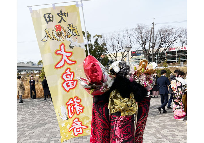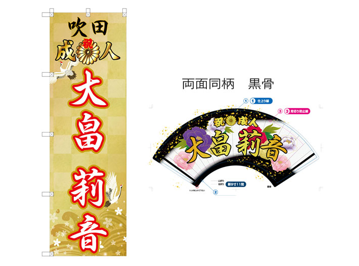 成人式用のオリジナルのぼり旗とオリジナル扇子を製作させて頂きましたので、ご紹介いたします。