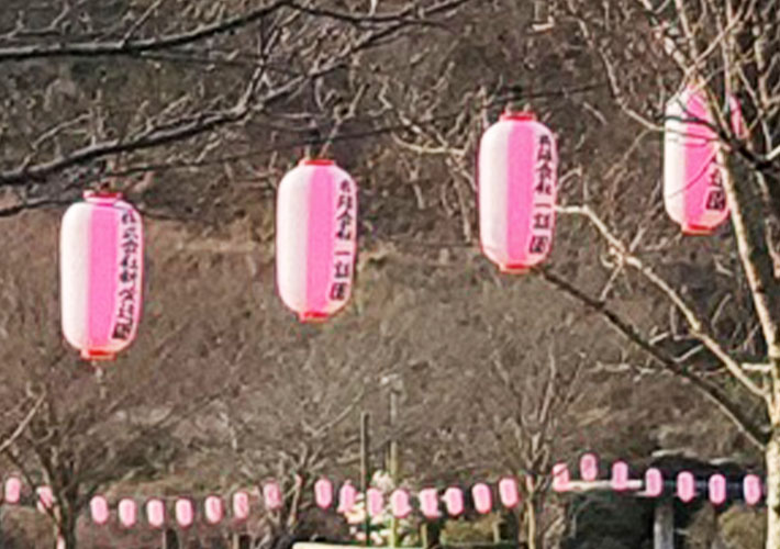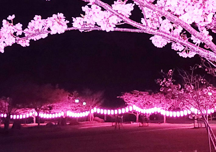 ピンクの提灯は点灯するといっそう華やかで、桜との相性も抜群です!