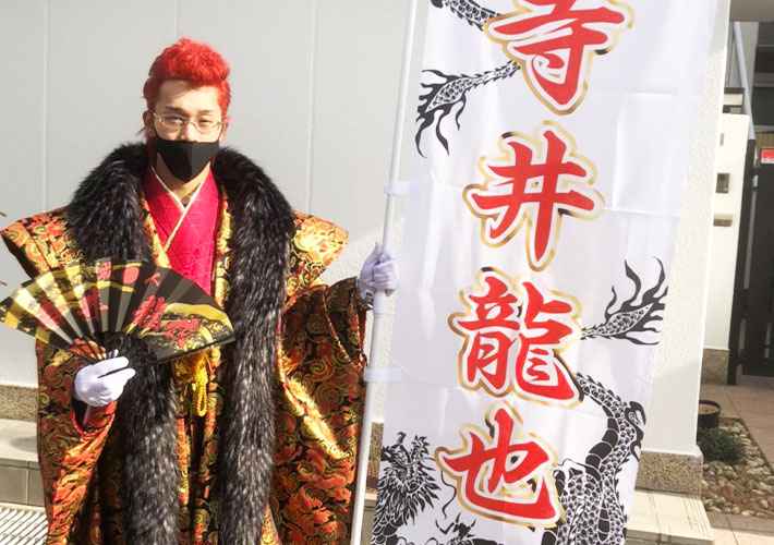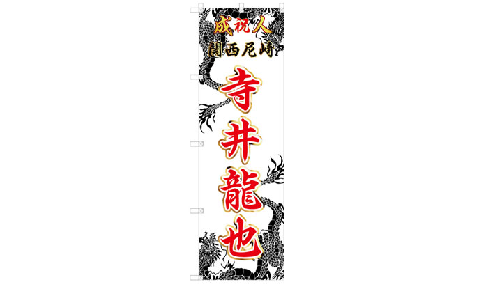 成人式のぼり旗の定番人気仕様となる、w600×h1,800サイズ、テトロンポンジ生地にて制作いたしました。