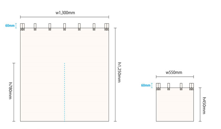 | 仕立て | 周囲縫製 上部共チチ(70mm) 防炎加工(シール付き) |