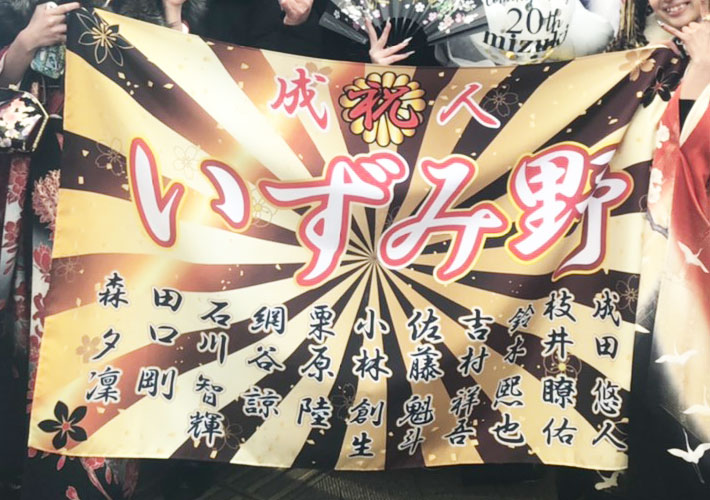 成人式用のオリジナル旗を製作させて頂きましたので、ご紹介いたします。
