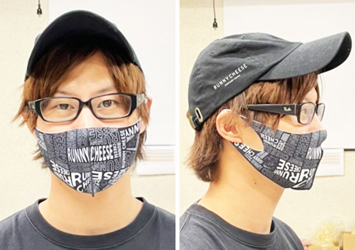 全面プリントマスクにフルカラー印刷を施し、ロゴがかっこいいマスクを作成しました。