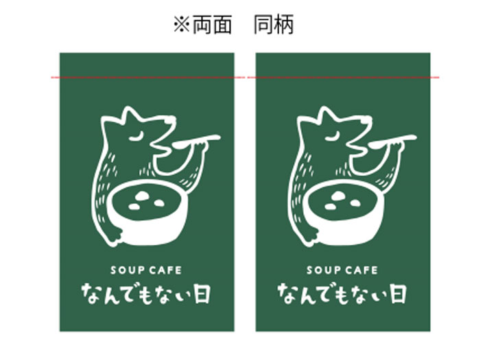 温かみのあるイラストと店舗ロゴが入った、こちらのデザインから名入れ制作を行いました。