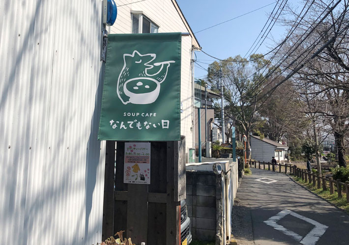 深いグリーンを基調としたフラッグを、店舗の屋外装飾としてご活用頂いております。