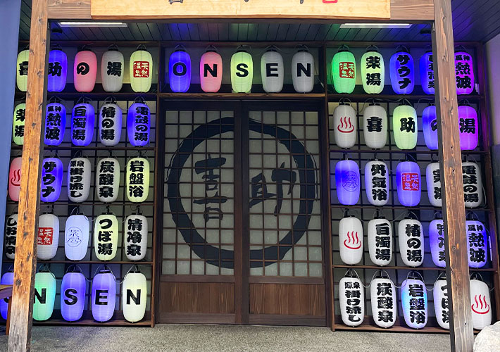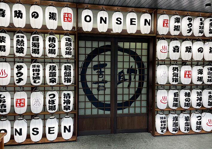 温泉施設様の装飾用提灯を名入れ製作させて頂きましたので、ご紹介いたします。